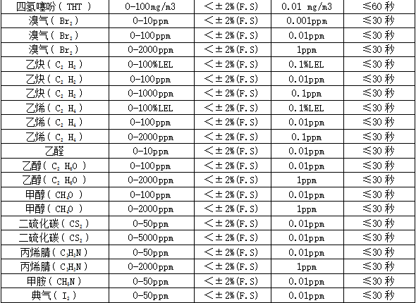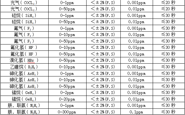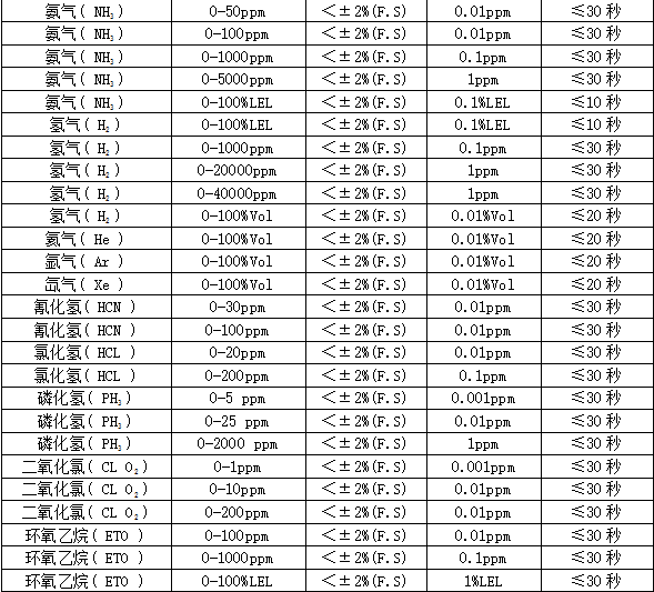 分 辨 率:0.01ppm或0.001ppm(0~10 ppm);0.01ppm(0~100 ppm),0.1ppm(0~1000 ppm),1ppm(0~1000 ppm以上),0.01毫克/升(0~200%毫克/升)、0.1%LEL、0.01%、0.001%Vol。