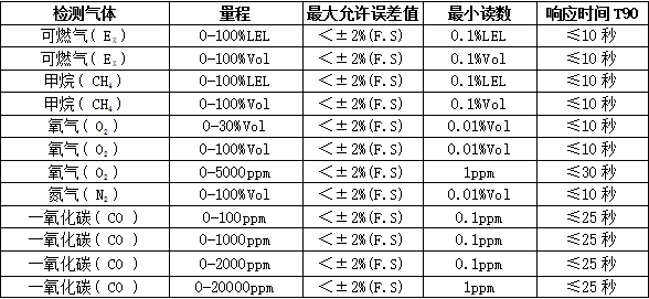 功 耗:瞬間最大電流:電化學原理60毫安,催化或紅外原理120毫安