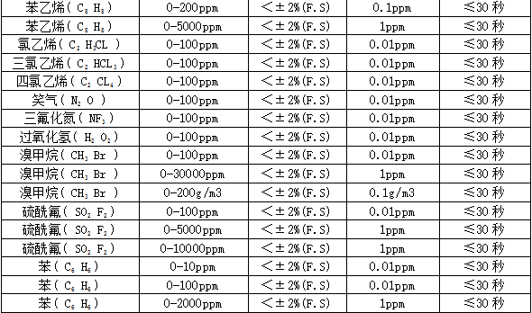 檢測范圍:0-1000、2000、5000ppm 四氟乙烷