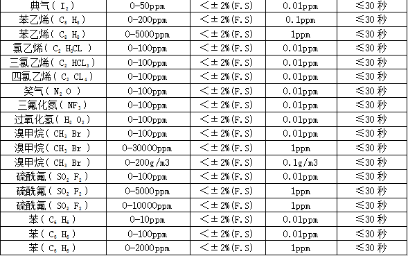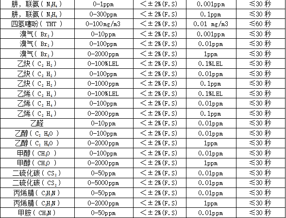 分 辨 率:0.01ppm或0.001ppm(0~10 ppm);0.01ppm(0~100 ppm),0.1ppm(0~1000 ppm),1ppm(0~1000 ppm以上),0.01毫克/升(0~200%毫克/升)、0.1%LEL、0.01%、0.001%Vol。