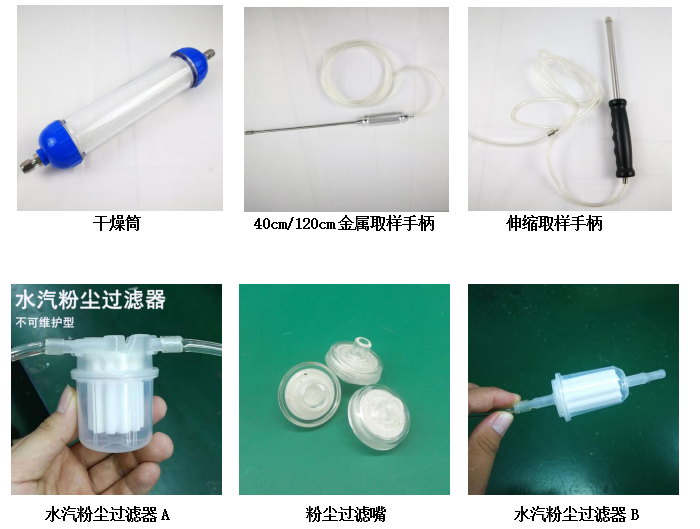 選配項:溫濕度測量功能、1.2 m 可伸縮采樣手柄(1-10米軟管,標準長度1米)、0.4米不銹鋼采樣手柄(帶粉塵過濾器,不可伸縮)、高溫采樣降溫過濾手柄、高溫高濕預處理系統、濕度粉塵過濾器多個、掛繩、光盤(上位機通訊軟件)、外置微型無線紅藍牙打印機。